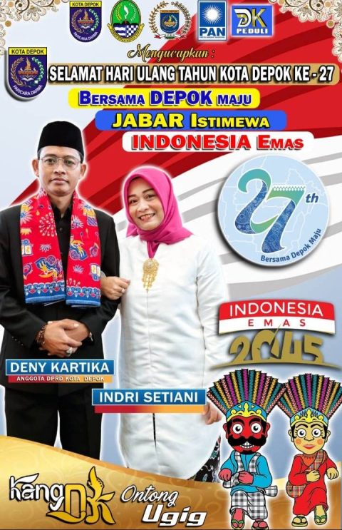 Tak lupa, Deni Kartika bersama Istri mengucapkan Selamat HUT ke+27 Kota Depok tahun 2026. “Saya Deni Kartika Anggota DPRD Kota Depok bersama Istri, mengucapkan Selamat Ulang Tahun Kota Depok ke-27, Bersama Depok Maju, Jabar Istimewa, Indonesia Emas,” ucapnya. (Rik)