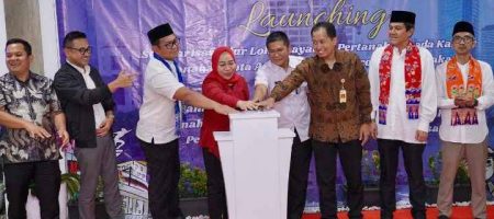 Penekanan tombol peluncuran aplikasi Pengukuran Terjadwal, oleh Direktur Pengukuran dan Pemetaan Dasar Pertanahan dan Ruang, Kepala Kanwil BPN Provinsi DKI Jakarta, serta sejumlah Kepala Kantah se-DKI Jakarta.(Foto: JM/YZ)