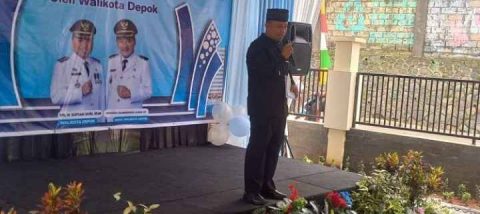 Wali Kota Depok saat sambutan peresmian Gedung Kantor Kelurahan Bojongsari Baru (foto; dib)
