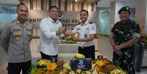Karutan Depok Agung Nurbani bersama Kepala Kantor Imigrasi Kelas I Non TPI Depok Irvan Triansyah, Kapolsek Sukmajaya AKP Rizky Firmansyah, serta Wadanramil 03/Sukmajaya Kapten Cpl Edy Moerdoko saat syukuran Hari Bakti Imigrasi ke-76, di Kantor Imigrasi Kelas I Non TPI Depok (foto: put)