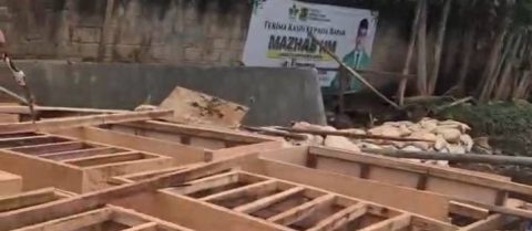 “Hari ini saya berada di lokasi pembangunan jembatan Kali Ciwangi di RW 10, RJB. Penataan pinggir kali dan pemasangan konblok sudah selesai, sekarang sedang dilakukan pembangunan jembatan,” jelasnya Mazhab HM di lokasi.