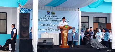 Wartasentral.com, Depok – Wali Kota Depok Supian Suri meresmikan Madrasah Tsanawiyah (MTs) Negeri Pancoran Mas (Panmas), yang berlokasi di Jalan Caringin Gang Jagal, Kelurahan Rangkapan Jaya, Kecamatan Pancoran Mas, Rabu (21/1/2026).