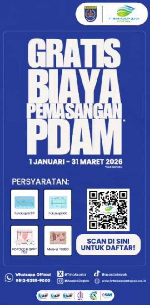 “Masyarakat juga bisa melakukan pendaftaran langsung di kantor pelayanan Tirta Asasta Depok terdekat, dengan membawa kelengkapan persyaratan,” terangnya.