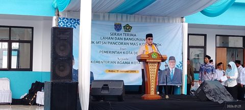 “Saya Wakil Menteri Agama Republik Indonesia, hari ini datang ke Kota Depok untuk menyaksikan serah terima dan peresmian gedung Madrasah Tsanawiyah Negeri (MTsN) Pancoran Mas, yang ini adalah hibah murni dari Wali Kota Depok,” ucapnya.